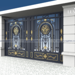 Chất liệu, mẫu mã: Khung tranh cổng sử dụng sắt vuông đặc, thanh chính sử dụng vuông đặc rèn thủ công tạo hoa văn trang trí. Phụ kiện hoa sắt rèn thủ công, một số phụ kiện đúc chuyên dụng cho Biệt thự.